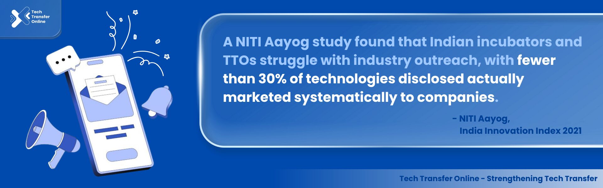 This manual is meant as a practical guide for practicing technology transfer professionals in academic and research institutions. The manual focuses on practical insights for practitioners from other practitioners. This manual has been developed by Venture Center’s Regional Tech Transfer Office, TechEx.in (supported by BIRAC/NBM). It draws content partly from resources created under UNIDO’s FLCTD project (supported by UNIDO, BEE, and GEF) and partly from resources developed during various Venture Center workshops.